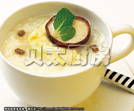 米饭1碗,牛肉末150g,香菇2朵,鸡蛋2枚,盐2茶匙(10g),鸡精1茶匙(5g),生抽1茶匙(5ml),白胡椒粉1/2茶匙(3g),橄榄油1汤匙(15ml),高汤1碗(250ml)