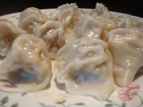五花搅肉(细),饺子皮,高丽菜,韭黄,葱白,柴鱼粉,胡椒粉,香油,盐