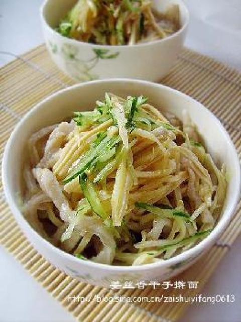 全麦粉,高筋面粉,嫩姜,香干,黄瓜,盐,香油,辣油,醋,鸡精