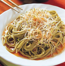 抹茶面80g,苜蓿芽20g,柚香沙拉酱3大匙