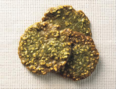 4.最后将杏仁角加入拌匀,并如同杏仁瓦片作法(5)般整形成圆片,入烤箱以上火170℃、下火150℃烤约12分钟即可。
