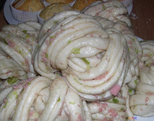 第五种:面食菜谱火腿肠花环包做法