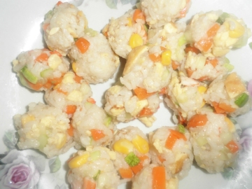 米饭,鸡蛋,虾,胡萝卜,玉米,青豆,盐,糖,胡椒粉.