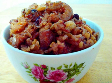 有机杂豆1包200g,糯米2杯,红谷米半杯,虾米干1/3杯,干香菇6朵,切粒咸猪肉1杯半
