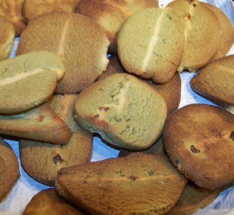 烘烤: 150℃/130℃ 20分钟 烤时候请注意,我有点时间长了,饼干有点变色了,绿茶东西很容易变色。