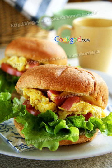 做早餐并不是一件麻烦事儿,比如这个汉堡只要十分钟就可以完成了,除了炒鸡蛋,其他材料都是现成的,营养并且美味。其他比如馄饨、饺子、烧麦之类的都可以提前做好冻在冰箱里,早上一边洗脸刷牙一边煮或煎就行了……记得以前上学的时候,妈妈每天早上很早起来为我们做早餐,觉得她特别辛苦。现在才知道,在这样有点冷的早晨,天还没有大亮,打开厨房的灯,点起炉火为家人准备早点,锅里呼呼的冒着热气,其实是一件特别温暖和幸福的事儿。用料:面包4个、鸡蛋4个、火腿50克、奶油2大勺、起司4片、番茄一个、生菜4片、食用油、盐、胡椒粉少许