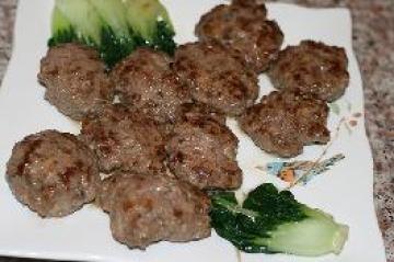 平底镬烧热,加油,油滚(冒烟)即转中火,用汤匙压牛肉成圆球,逐一放入镬中,压成扁平,煎约五分钟,转另一边继续煎约三分钟,用汤匙背轻压牛肉饼,感觉略硬而有弹性即可上碟。