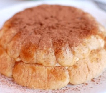 6、吃之前把碗倒扣在一个大盘上,去除保鲜膜,在圆屋顶上洒些可可粉,开吃!