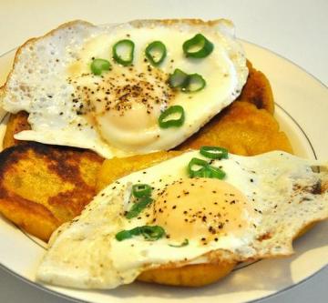 第一种:面食菜谱南瓜饼和荷包蛋做法