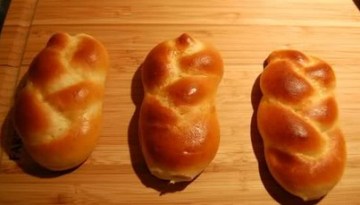 8. 按图整成麦穗型.图中的最后一下是将长条的一头从左边拉过来,塞进下面的圆洞.当然面团也可以整成简单的圆型或椭圆型.做成麦穗型只是为了showoff.
