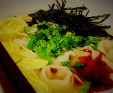 云吞自己包的(经常没事就包点云吞饺子包子什么的 以备不时之需 在我眼里 跟方便面功效差不多哈)