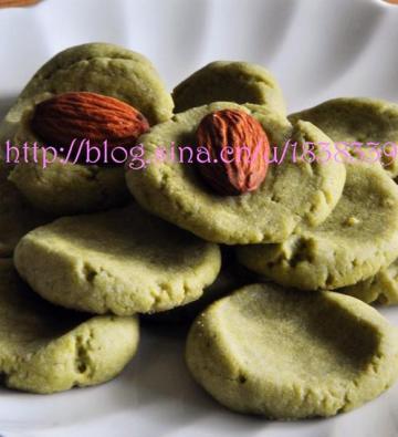 低筋面粉90g, 玉米淀粉40g,糖50g,绿茶粉10g,泡打粉2小匙,鸡蛋黄2个,黄油80g
