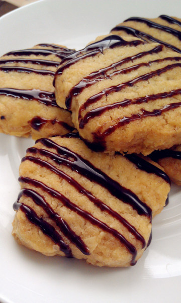 5、巧克力隔水融化,如裱花袋在饼干上装饰。