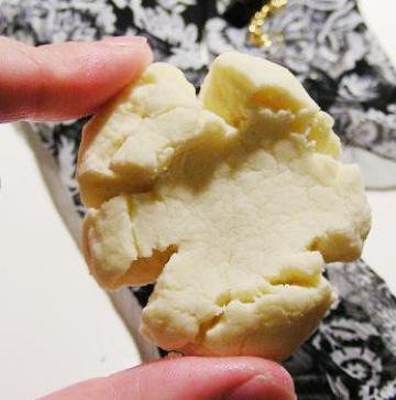 5、冷藏后的小球,用大拇指按扁.(小饼周围自然裂开,象小花朵一样很可爱)