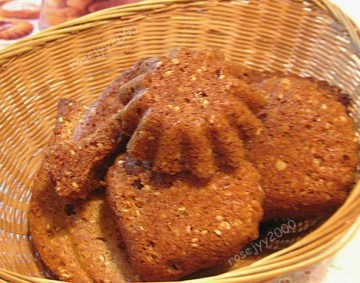 牛油113克,沙拉油(菜油)45克,枫糖40克,黄糖65克,燕麦片70克,玉米粉(用来烤糕的那种)20克,低筋粉(baking flour )80克,泡打粉1/8茶匙,芝麻10克(可以跟据自己的喜好增减)。