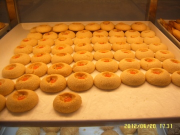4)裱花袋里装入果酱,往洞里挤入适量果酱即可烘烤。