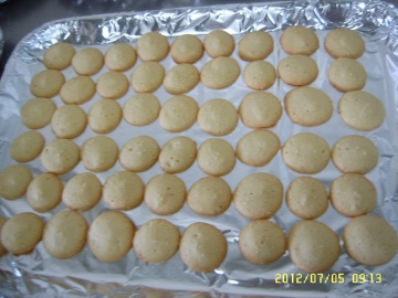 4)装入圆型裱花嘴里挤入烤盘,大小要一至。