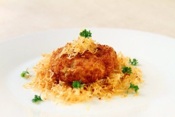 11.将白花菜可丽饼放入,炸至金黄色捞出即可