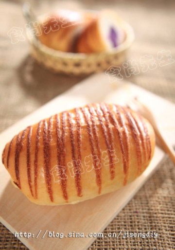 高筋面粉500克,紫薯适量,细糖100克,盐6克,鸡蛋50克,奶粉20克,酵母6克,水250克