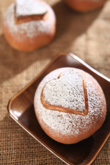 7.将压好的心形面团放入包好馅料的面团中间