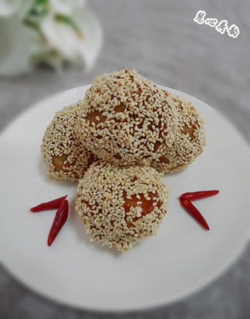 面粉350克,白芝麻,小苏打1/4茶匙,红糖,麦芽糖,蜂蜜,食用油,白糖