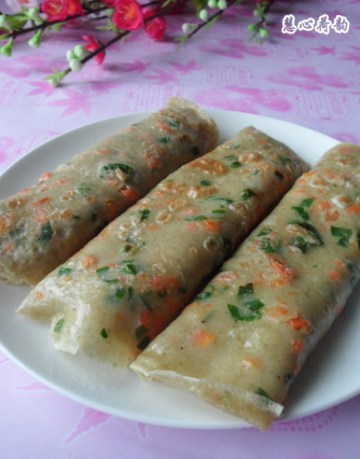 第一种:面食菜谱韭香胡萝卜藜麦鸡蛋饼做法