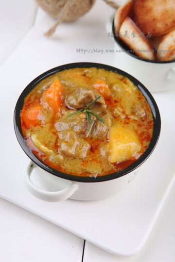 第一种:面食菜谱咖喱羊肉配香煎馒头片做法