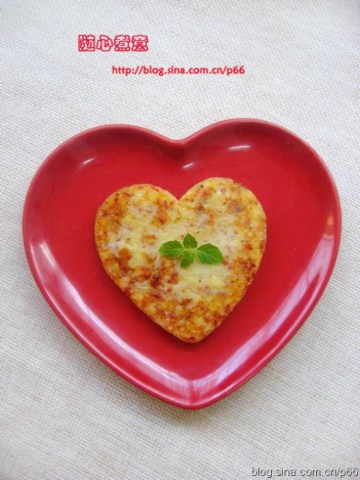 第二种:爱心早餐:鸡蛋土豆丝火腿煎饼~