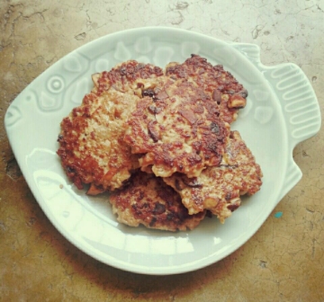 3.取锅倒入沙拉油烧热后转小火,放入作法2的绞肉,用铲子压平成饼状,煎至两面香酥金黄即可。