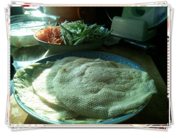 2、锅烧热,不放油,干锅,倒入一些面糊,立即用铲子将面糊摊成圆形的面饼。