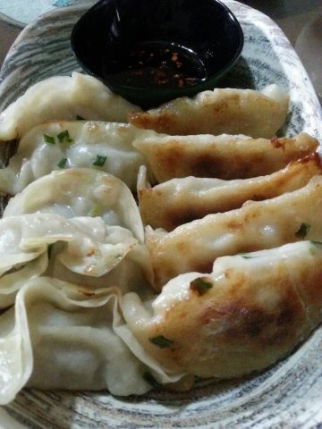 第一种:面食菜谱虾肉蟹味菇煎饺做法