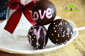 10. 巧克力隔水 融化成液体,将棒棒糖蛋糕裹上一层巧克力,撒上糖珠随意装饰