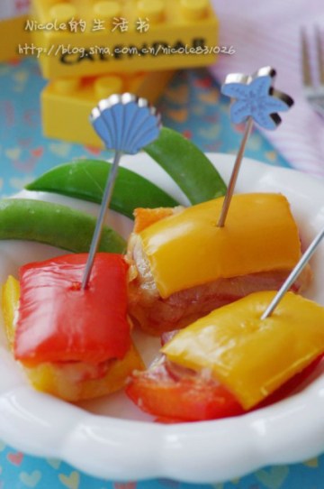 第九种:奶酪焗彩椒培根串
