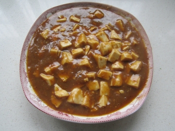 板豆腐1块,葱段10公克,辣椒片5公克,酱油1小匙,糖少许,水80㏄