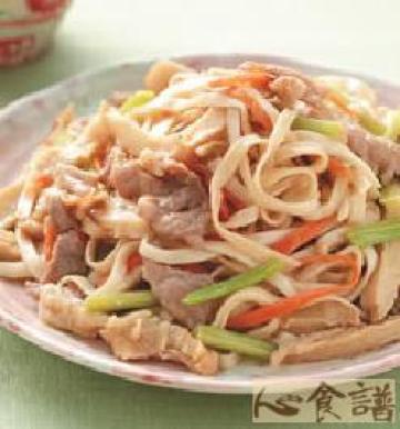 主料:米苔目150公克,肉丝80公克,香菇丝30公克,豆芽 40公克,菜段20公克,