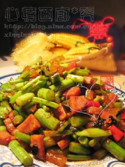 青椒炒臭豆腐、芦笋炒腊肉、春不老炒四季豆。
