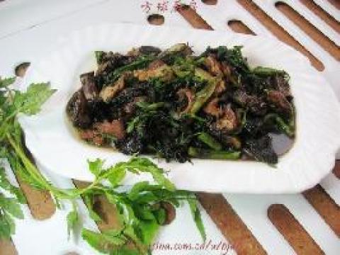 第一种:炒菜菜谱,野芹烩脆肠花做法