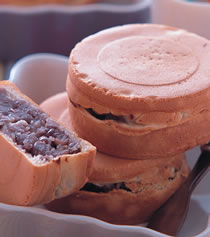 a.全蛋100公克,细砂糖30公克,盐2公克,b.牛奶100公克,水100cc,c.低筋面粉160公克,中筋面粉40公克,香草粉6公克,泡打粉3公克,d.沙拉油30cc,e.红豆馅适量