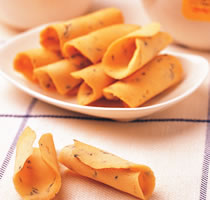 8.猫舌饼出炉后应呈现淡黄色泽,待其冷却即可食用,或者在刚出炉亦可趁热捲起使其呈现弯曲捲度。