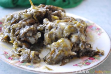 2.焯一下水,然后放点盐,味精和陈醋就ok了!大猪好像很喜欢的样子,大概是因为少,他就抢上了~