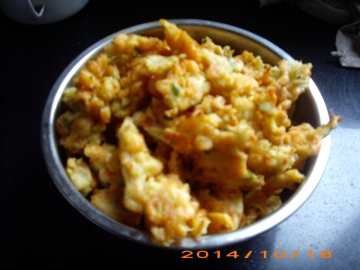 1.虾洗净放大碗里加适量面粉,盐,水和成糊状