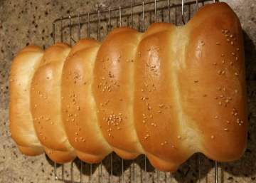 9. 可以乘热在出炉的面包上涂搽一层奶油或黄油, 面包表面会很光亮诱人的喔~