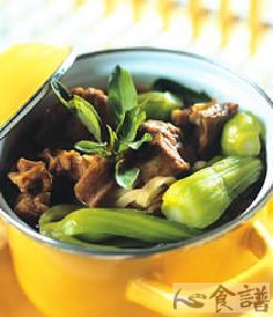 1.将羊里肌肉切成约0.5公分厚的片状,加入腌料抓拌均匀,静置20分钟腌渍入味备用。