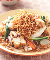 面肠素肉燥、花生面筋、奶油火腿义大利面、蚵仔大肠面线
