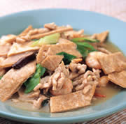 白菜切丝、荷叶饼切条、猪肉切丝