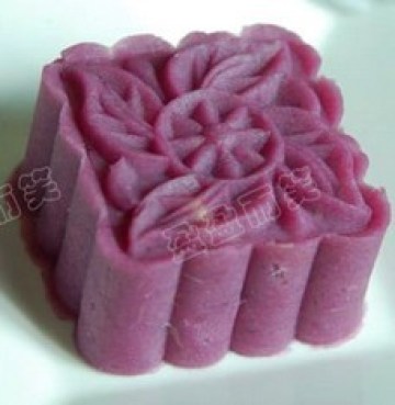 3 把熟透的紫薯压成泥,用饼印压紧,扣出即可。