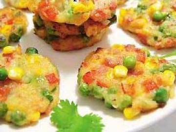 大土豆3个、面粉100克,鸡蛋1个、青豆50克、胡萝卜1棵、葱2棵(或洋葱半个)、盐、味精适量,植物油少许