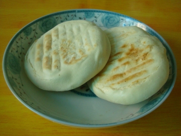 5.平底锅中火加热(可以不放油),当锅已经很热了,放入小饼(剩下的饼盖好纱布放在避风处),小火每面烤5分钟就好。烤的时候可以加个盖子,这样并不会太干。入法炮制做完所有的饼。