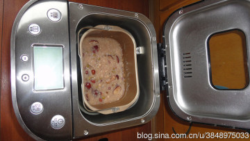 1.将面粉、水、酵母放入面包机,选择“和面/发酵程序”,启动开关,让面包机开始和面。和面完成后,让面团在面包机中静置发酵。