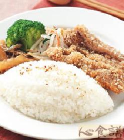 排骨1片,白饭1碗,炸粉:2大匙,面粉1/2大匙,太白粉1/2小匙,酱油1大匙,糖1/4小匙,米酒1大匙